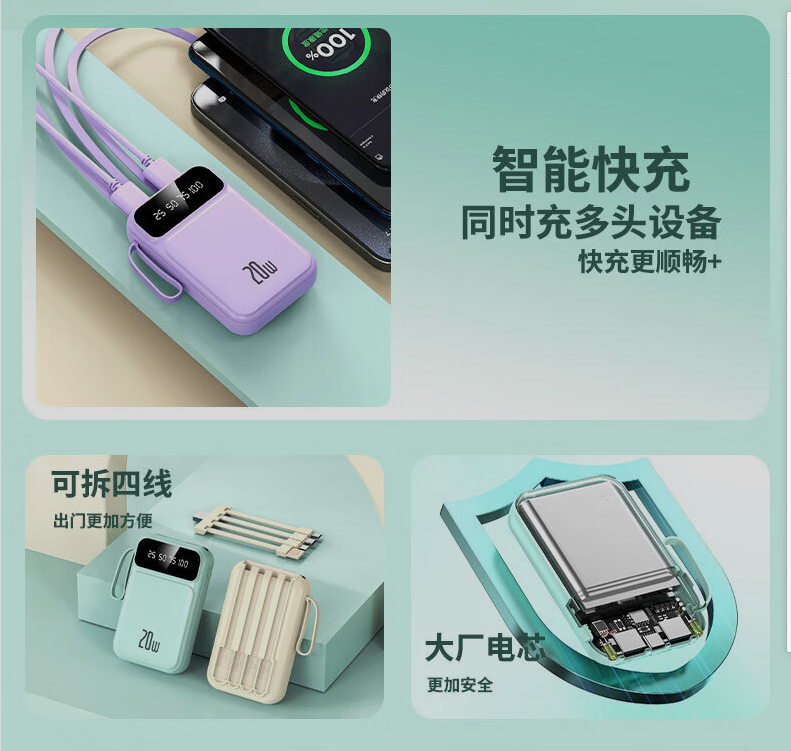 自带线充电宝2000毫安