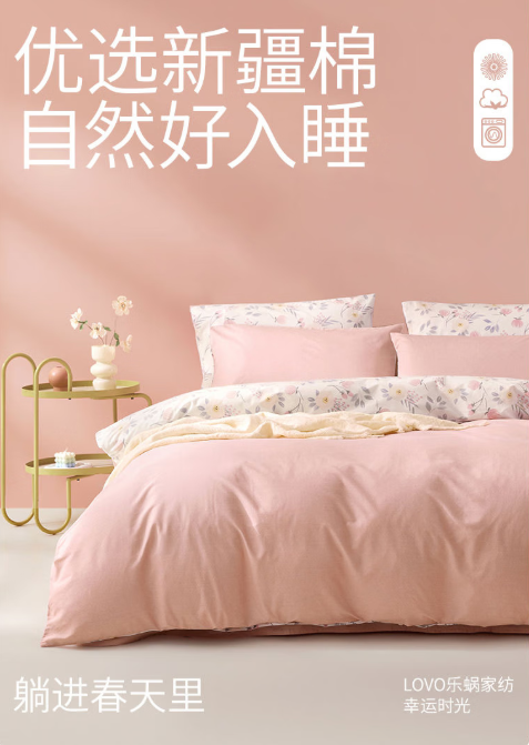 LOVO罗莱生活全棉四件套100%纯棉 新疆棉 幸运时光 220*240cm